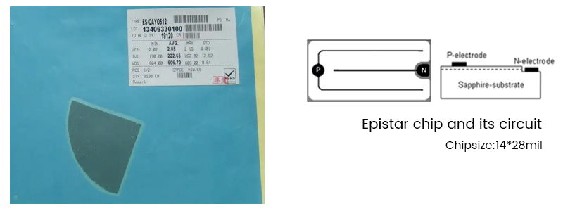 High quality led lights strips require at least take the well-known brand chips such as Epistar, Bridgelux, Philips, Cree, Samsung or SanAn. For some poor quality led strip light products, they are taking the unknow brand chip. The LED maybe die after few months later. Everyone said they are use Epistar’s chip, is that true? Actually each chip manufacture with there unique circuit design. You can check the circuit by microscope, see here the Epistar chip’s circuit is unique.