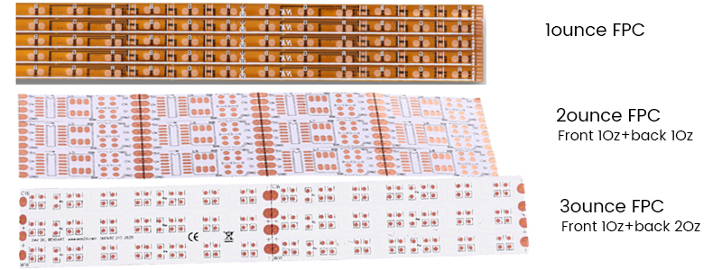 High quality led strips require at least 2 ounces(copper foil) pcb(front 1ounce+back 1ounce) in order to get enough heat dissipation. Of course, 3 ounces or 4 ounces will be better if you don’t care the cost.
